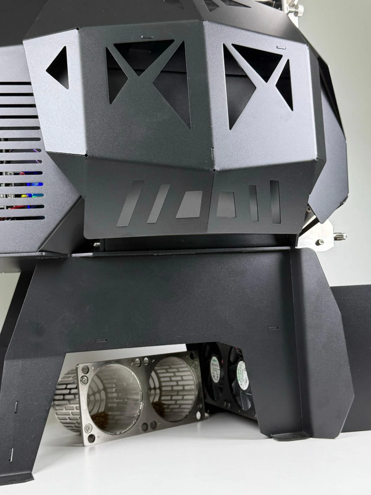 For those that roast inside, sometimes the chaff gets sucked through the cooling fans and blown out the back. The magnetic chaff collector for the cooling fans attached with a magnet. Easy to install and keep clean.